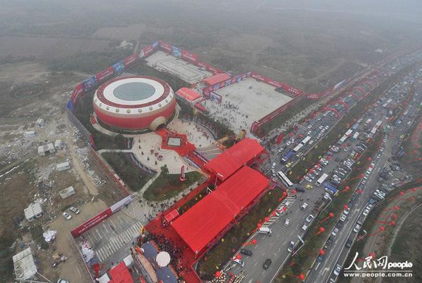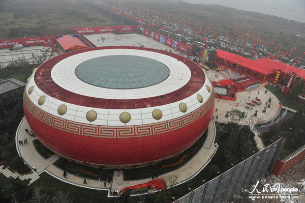 11月2日,安徽合肥滨湖新区,直径61米高18米,以凤阳花鼓为造型的鼓型建筑正式开放,据悉这座被誉为世界最大鼓型建筑正在申报吉尼斯纪录。当天开放仪式现场著名影星甄子丹现身捧场,四台直升机盘旋,吸引了万余当地市民,该建筑为投资300亿元的万达文化旅游城的展示中心。