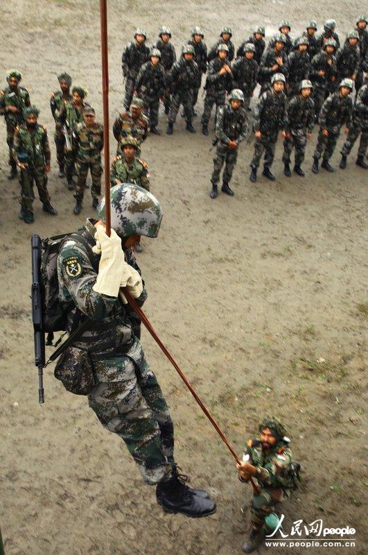其中A连由中方2个排、印方1个排组成,连长由中方军官担任;B连由中方1个排、印方2个排组成,连长由印方军官担任。中印参训分队混编后,进行了简易爆炸物的搜索与排除、建立隐蔽观察哨、直升机索降等训练。CFP 版权作品、请勿转载