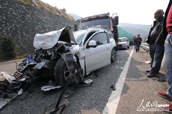 据了解,12月3日早上8时至9时,沪昆高速贵州剑河县往台江县方向新寨大桥路段发生4起多车追尾事故,导致6辆大货车,1辆小货车,4辆小车,1辆大客车连环相撞。事故原因初步认定为大雾天气所致,目前事故路段仍在疏通中。