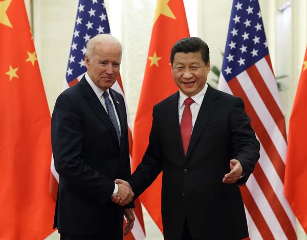 国家主席习近平4日在人民大会堂同美国副总统拜登举行会谈。双方就中美关系及共同关心的国际和地区问题深入交换意见,一致认为,中美双方要加强对话、交流、合作,努力推进中美新型大国关系建设。