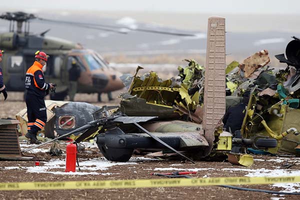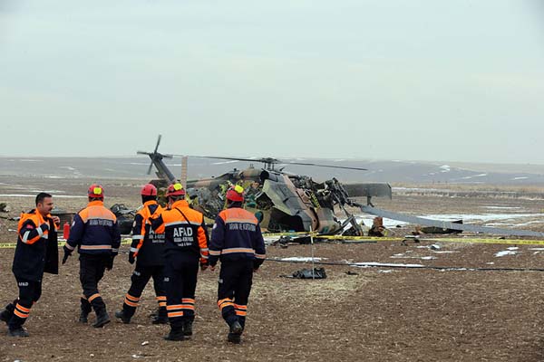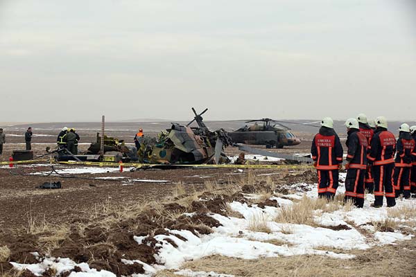 12月17日,救援人员在土耳其首都安卡拉直升机坠毁事故现场工作。新华社发(穆斯塔法·卡亚摄)
