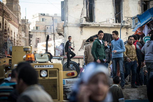 12月24日,在埃及曼苏拉市,当地民众围观汽车炸弹爆炸现场。新华社记者 潘超越 摄