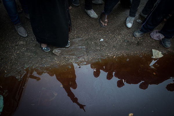 12月24日,在埃及曼苏拉市,穆兄会反对者在爆炸现场的一处血水旁示威抗议。新华社记者 潘超越 摄