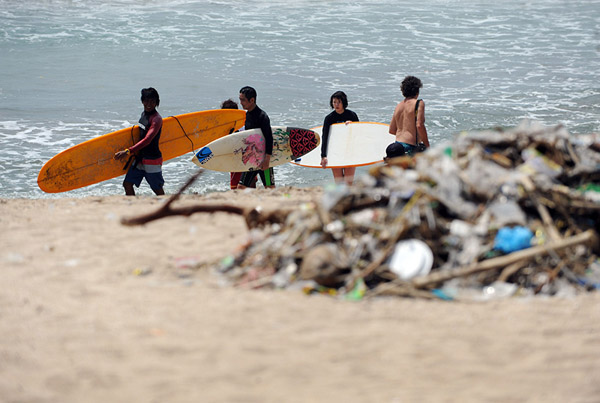 巴厘岛海滩遭遇垃圾侵袭