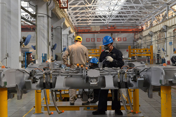 1月3日,工人在中国南车四方股份公司转向架制造车间制造CRH380A高速动车组运行的重要部件——转向架。新华社记者 吴凯翔 摄