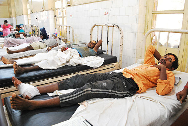 1月5日,楼房坍塌事故的伤者在印度果阿的卡纳科纳地区一所医院内休息。新华社/法新