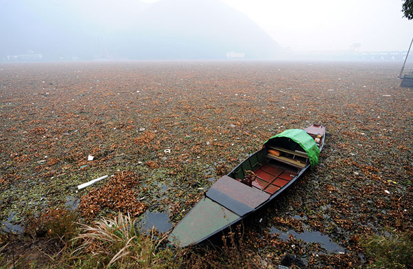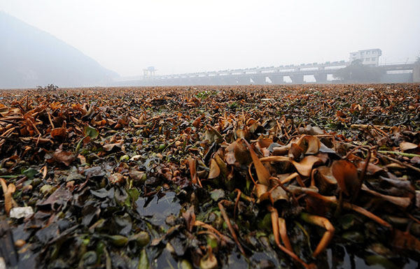 近日,大批已经腐烂的水葫芦从上游漂下富春江,在杭州市桐庐县富春江大坝处形成绵延约一公里的“水葫芦带”,密密麻麻的水葫芦遮蔽了曾经风光旖旎的富春江。在水葫芦周围的水域,水已经变得混浊不堪,发出阵阵恶臭。