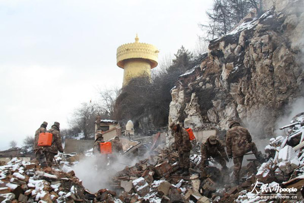 12日上午,记者来到被焚烧后的独克宗古城,现场一片狼藉,消防人员仍在现场防守,清理废墟的工作已经开始,不少古城的居民悲戚的来到这里,默默伫立或是加入清理工作。68岁的藏族老人何培楚家一栋两层商铺被烧毁,他告诉记者:“说不出的难过,感觉古城还在心里,希望古城有更美好的明天。”