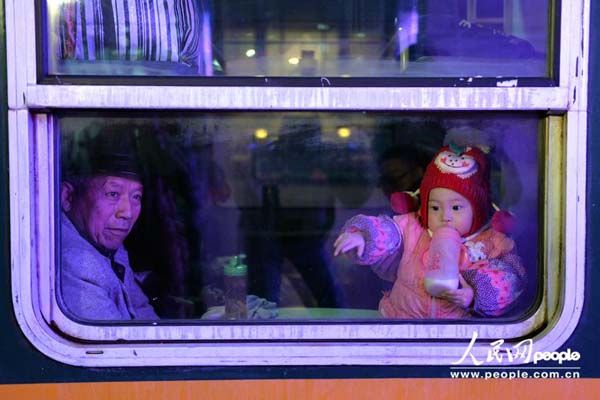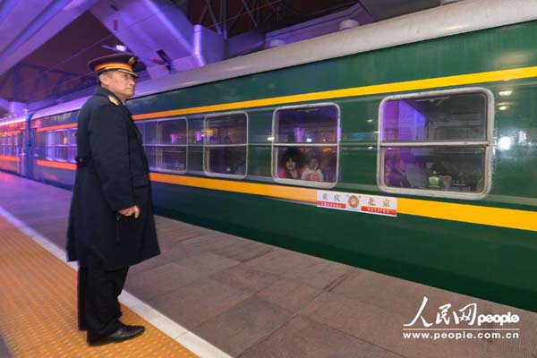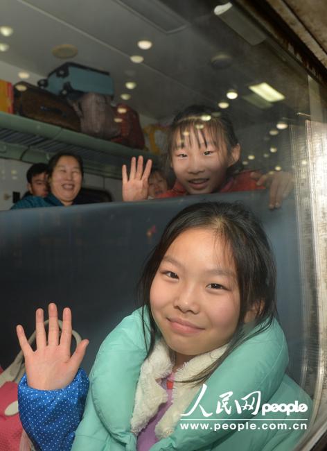 人民网北京1月16日电 (记者 张雨 翁奇羽)1月16日,2014年春运正式启动,为期40天,于2月24日结束。2014年北京铁路局春运首趟L603次旅客列车,于1月16日零时11分满载着返乡的旅客从北京站发出。