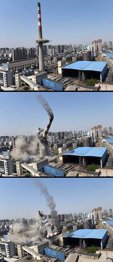 沈阳市内最高烟囱爆破重建