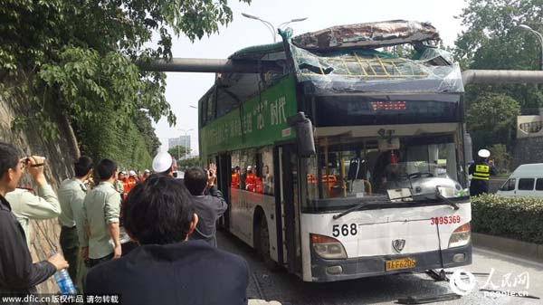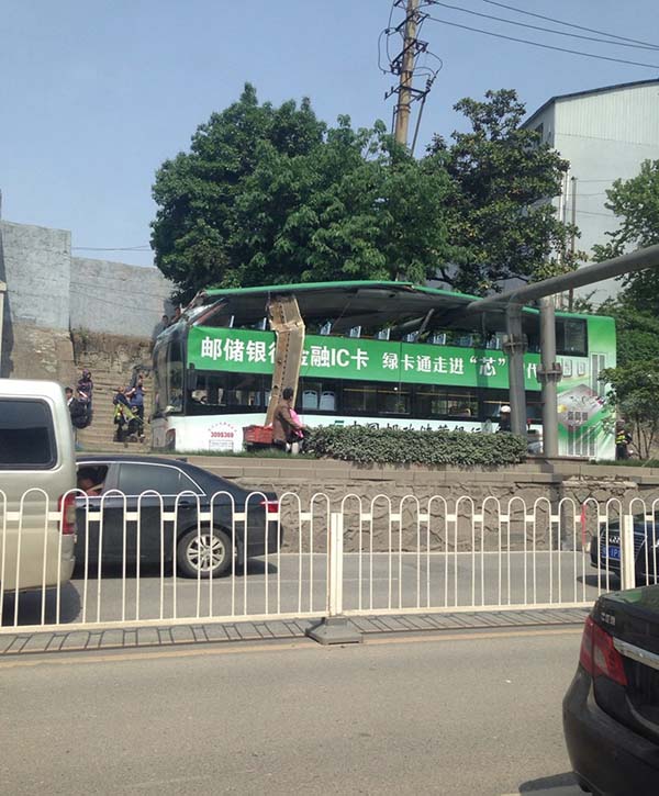 武汉市曾发生过多起双层公交车削顶的事故,最严重的一例,发生于2011年7月,一辆509双层公交车行至解放大道徐州新村铁路桥涵洞时,违规开上侧边辅道,撞上限高架,10名乘客受伤。