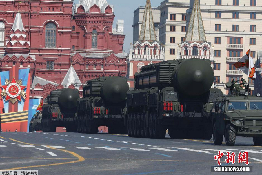 纪念卫国战争胜利69周年阅兵式9日在莫斯科红场举行,俄陆海空军队及战略导弹部队逾1.1万人参加阅兵式,S-400“凯旋”防空导弹系统等超过200部军事装备现身红场。俄总统普京在致辞中称,忠于祖国、捍卫国家利益很重要。