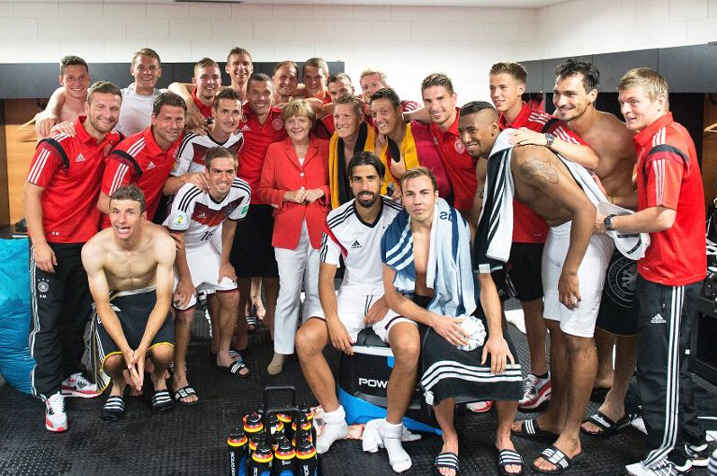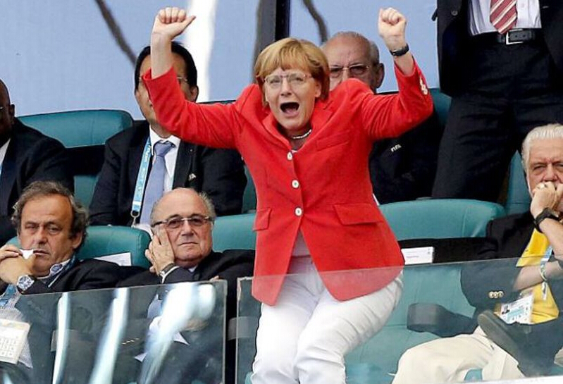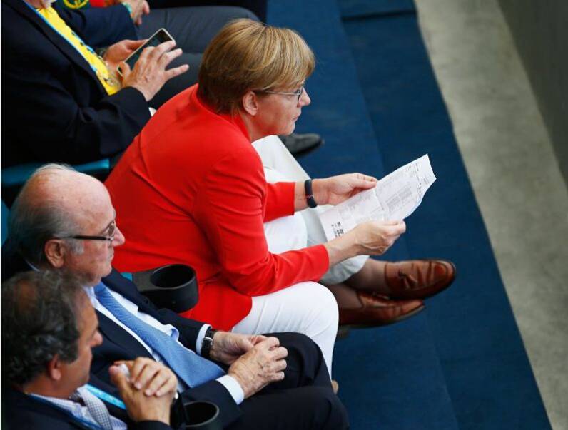 德国队世界杯首战告捷 默克尔看比赛照片走红(图)