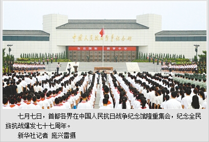 本报北京7月7日电 (记者倪光辉)缅怀民族先烈丰功伟绩,凝聚和平发展正义力量。在全民族抗战爆发七十七周年之际,首都各界在中国人民抗日战争纪念馆隆重集会。中共中央总书记、国家主席、中央军委主席习近平发表重要讲话强调,中国人民对战争带来的苦难有着刻骨铭心的记忆,对和平有着孜孜不倦的追求。纵观世界历史,依靠武力对外侵略扩张最终都是要失败的。这是历史规律。中国将坚定不移走和平发展道路,并且希望世界各国共同走和平发展道路,让和平的阳光永远普照人类生活的星球。