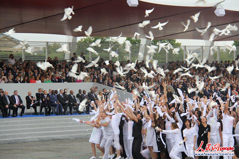 人们放飞和平鸽,阅兵暨纪念活动正式结束。人民网记者邢雪摄