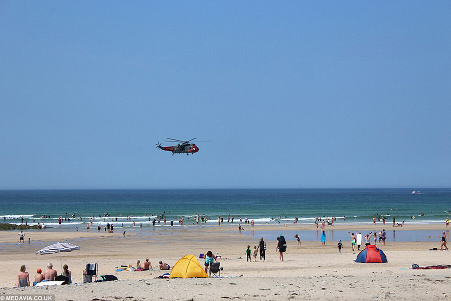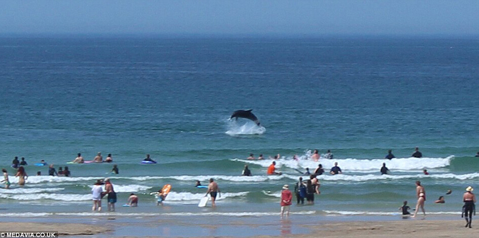 日前,一只野生海豚出现在英国康沃尔海滩并跃出水面,惊奇兴奋的游客欣赏到这场“表演”并拍下这一幕。后为确保海豚安全,在救生员与一架直升飞机的帮助下,海豚游离了海岸。