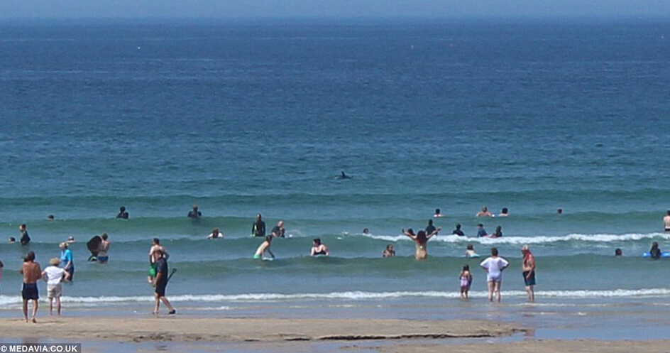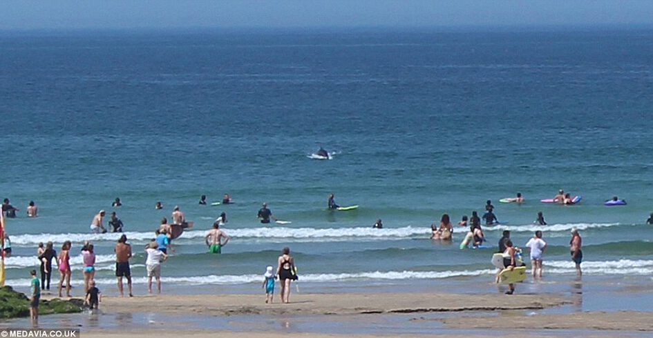 原标题:野生海豚惊现英国海滩戏水 引游客围观