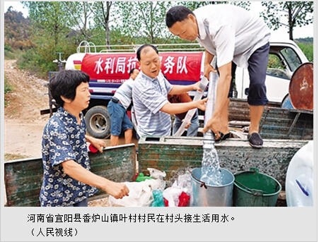 旱区各地科学调度水利工程,采取跨区调水、打井取水、拉水送水以及修建应急水源工程等多种措施,全力确保城乡人饮水安全,努力保障农业生产用水。据统计,入夏以来,河北、山西、内蒙古、山东、河南、安徽、陕西、湖北、四川、甘肃等省(区)共投入抗旱劳力912万人,临时解决168万人饮水困难,完成抗旱浇灌面积1.7亿亩次。