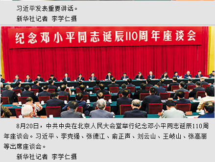 纪念邓小平诞辰110周年座谈会举行 习近平发表重要讲话