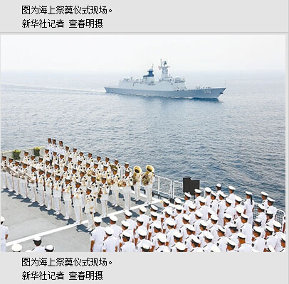 10时,由导弹护卫舰盐城舰、临沂舰、大同舰和1艘综合保障船及2架舰载直升机组成的海空编队,分别向预定海域航渡。11时30分许,嘹亮的国歌声中,海上祭奠仪式开始。参加祭奠仪式的军地领导和官兵代表低头默哀1分钟。从南沙群岛到渤海之滨,从东海前哨到黄海,停靠在军港内的舰艇一起鸣响汽笛。礼炮分队鸣放19响礼炮,官兵敬撒鲜花,并庄重许下“牢记历史,勿忘国耻;强军习武,报效祖国;经略海洋,维护海权;建设海军,梦圆中华”的誓言。