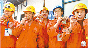 图②:9月7日,坚守在北京铁路地下直径线工程工地上的中铁隧道集团的工人们吃上了中秋月饼。