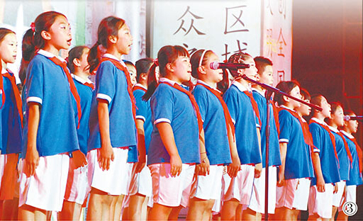 图③:9月7日晚,北京海淀区羊坊店中心小学学生在第六届北京“诗意中国——中华世纪坛中秋国际原创诗会”上表演诗朗诵《我心中的祖国》。
