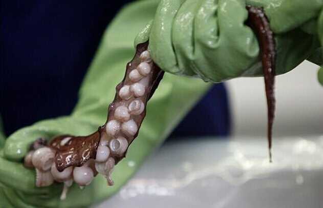 新西兰奥克兰理工大学的研究专家Kat Bolstad在带领团队对鱿鱼进行解冻检查之前,甚至动用了铲车来搬运它,研究人员连连发出“非常大,非常完美”的赞叹。据介绍,品种为大王酸浆鱿的这只雌性鱿鱼拥有8只触手,其中每一只的长度都超过了1米,而两条触须如果未被破坏,将是触手的两倍长。