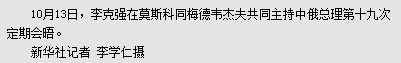 本报莫斯科10月13日电 (记者吴乐珺、陈效卫、谢亚宏)国务院总理李克强当地时间13日下午在莫斯科同俄罗斯总理梅德韦杰夫共同主持中俄总理第十九次定期会晤。两国总理举行了务实深入的会谈,听取中俄人文合作委员会、中俄总理定期会晤委员会、中俄投资合作委员会、中俄能源合作委员会四个合作机制的工作汇报,共同规划两国下一阶段全面合作。
