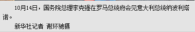 本报罗马10月14日电 (记者吴乐珺、史克栋、韩秉宸)国务院总理李克强当地时间14日下午在罗马总统府会见意大利总统纳波利塔诺。