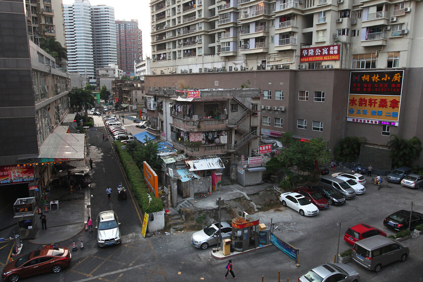 罗湖区中兴路与乐园路交会处,两栋未被开发的小楼墙壁发黑,已很陈旧,房主已不在楼内居住,被对外出租。周边有三个小区,小区楼房高达20多层。