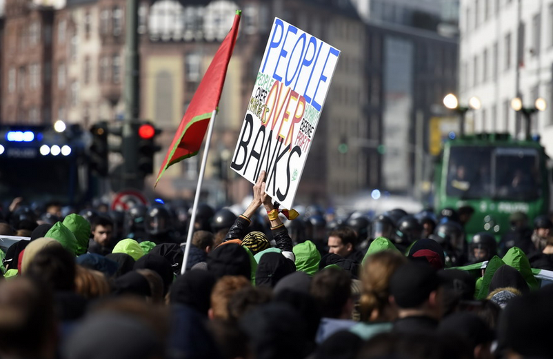 因对现行欧元区财政政策和货币政策不满,德国法兰克福市东部的欧洲央行新址附近18日发生示威游行,示威者与警方发生冲突,已造成逾百人受伤、约500人被捕。