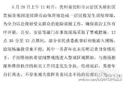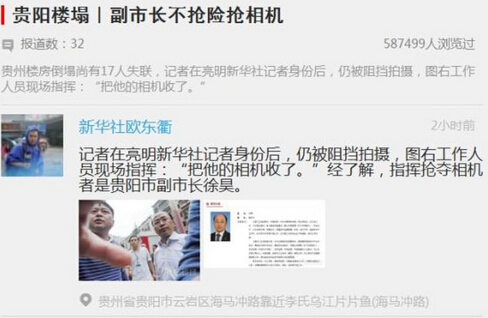 贵阳塌楼现场 副市长派人抢新华社记者相机