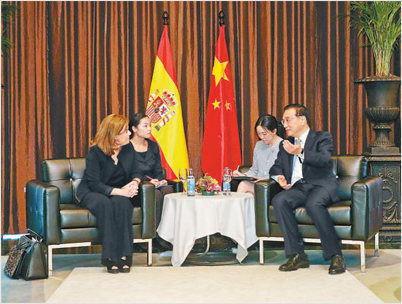 李克强积极评价中西关系近年来取得的发展,表示中方高度重视同西班牙的关系,愿在中西全面战略伙伴关系新的十年里,继续深化两国政治互信,推动双边贸易平衡增长,扩大双向投资往来,密切教育、文化、旅游等人文领域交往。希望西政府为中国企业在西开展业务,为中国公民在西旅行、学习、居留提供更多便利。