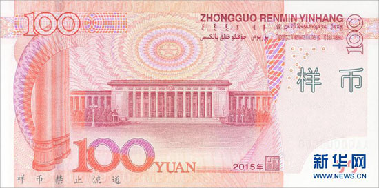 即将发行的新版100元纸币样币正面。 新华社发