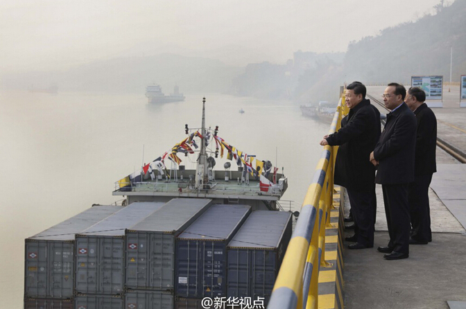 新华网北京1月5日电 习近平总书记4日下午来到重庆果园港考察,听取长江上游航运中心建设、铁路公路水路联运等情况介绍,察看正在作业的集装箱船。听说渝新欧国际铁路沿线国家实现一次报关查验、全线放行,他赞赏“挺好”。看到港口设施齐备,已初具规模,他说:“这里大有希望。”