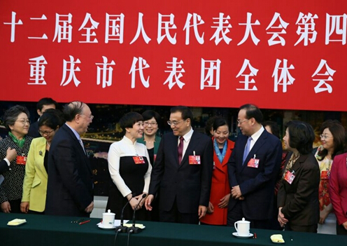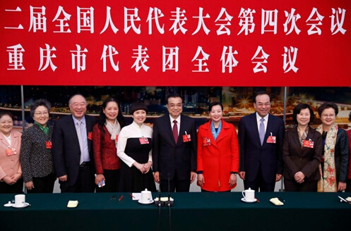 人民网北京3月8日电(记者 杨芳)8日上午,李克强在参加十二届全国人大四次会议重庆代表团全体会议时,现场女代表提议总理会后和女同胞们合影。李克强当即答应,并向在场的所有女代表,以及参加“两会”的全体女代表委员、工作人员致以三八妇女节问候。