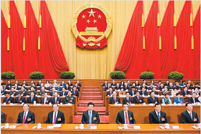 3月16日,十二届全国人大四次会议在北京人民大会堂闭幕。习近平、李克强、俞正声、刘云山、王岐山、张高丽等党和国家领导人在主席台就座。
