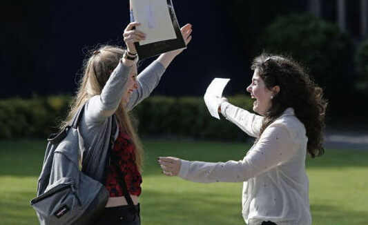 英国“高考”成绩公布 学生难掩激动情绪。图片来源:国际在线。