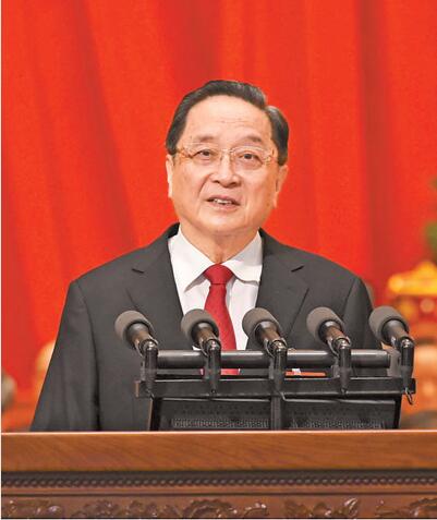 俞正声代表政协第十二届全国委员会常务委员会作工作报告。