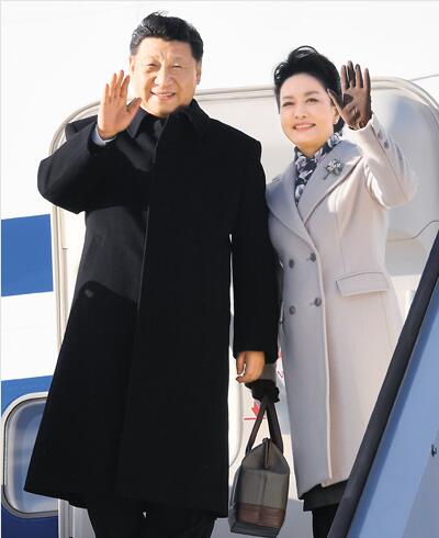 四月四日,国家主席习近平乘专机抵达赫尔辛基,开始对芬兰共和国进行国事访问。图为习近平和夫人彭丽媛步出舱门。
