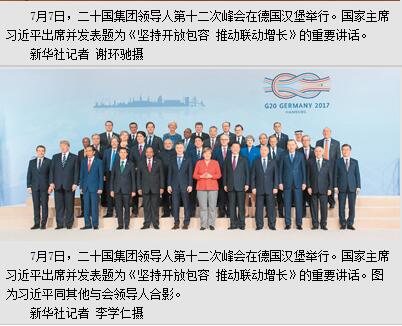 习近平出席二十国集团领导人汉堡峰会并发表重要讲话