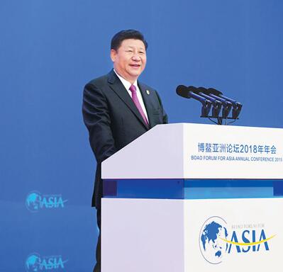 4月10日,博鳌亚洲论坛2018年年会在海南省博鳌开幕。国家主席习近平出席开幕式并发表题为《开放共创繁荣 创新引领未来》的主旨演讲。