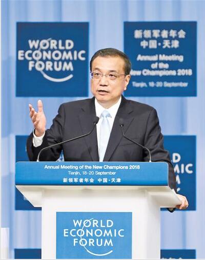 9月19日,国务院总理李克强在天津梅江会展中心出席2018年夏季达沃斯论坛开幕式并发表特别致辞。