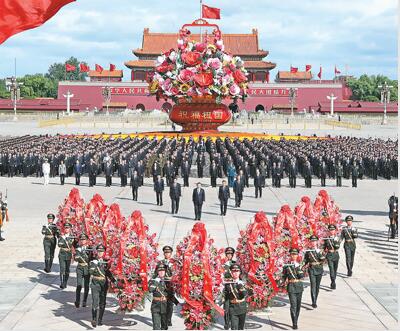 本报北京9月30日电 (记者张洋)天地英雄气,浩然壮国魂。烈士纪念日向人民英雄敬献花篮仪式30日上午在北京天安门广场隆重举行。党和国家领导人习近平、李克强、栗战书、汪洋、王沪宁、赵乐际、韩正、王岐山等,同各界代表一起出席仪式。