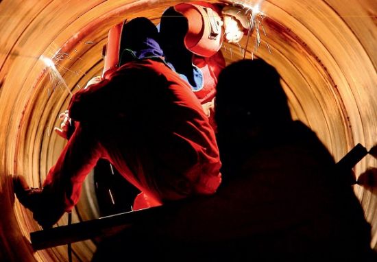 图片说明:设备维护是此次限供原因诸多版本中的一种,但许多人并不认可。图为中石油员工在天然气汇气管内进行焊接作业。 CFP