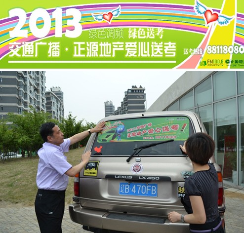 正源地产爱心送考公益车贴在2013年的6月,又成为了大连私家车主的“抢手货”。为了帮助考生安全、快捷、准时抵达考场,由正源地产组织的第六届“正源地产爱心送考”阳光公益活动即将启动。
