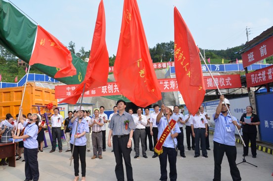 仪式上,鞠飞副主席为项目部授“创重庆市工人先锋号”旗帜,并与中铁二局集团公司工会主席张文杰为“关寿东劳模作业队”揭牌;出席仪式的领导还为各分部颁发了《职(民)工服务站》、《职(民)工夜校》牌匾,赠送了《职工服务手册》和体育用品;中铁二局渝万项目各分部领导班子签订了“联创共建”承诺书;“关寿东作业队”队长关寿东作了表态发言。
