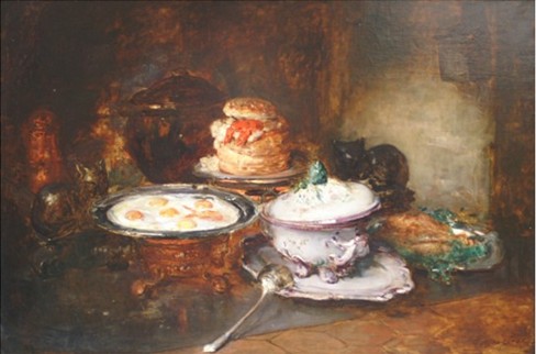 查尔斯·孟吉诺是19世纪最伟大的静物绘画大师,他与马奈既是良师又是益友。他的作品曾在卢浮宫、巴黎美爵艺术博物馆、安特卫普博物馆、欧里亚克博物馆、卡卡颂博物馆等多家知名艺术展览馆进行过展览。他创作的艺术特点既不同于古板的具象写实技法显得僵硬而死板,也不同于塞尚等静物大师的作品充满几何立体抽象元素,而是色彩灿烂、丰富、冷暖对比强烈而不失和谐统一。他的静物作品可谓是众多静物画家的范本之作,也开创了静物绘画的新天地,并且启迪了西方艺术其他流派的创新方向。ROGER收藏的作品中就包括四幅查尔斯·孟吉诺的作品。并由此开始收藏了莫奈、雷诺阿、马奈等印象派艺术大师的多幅作品。