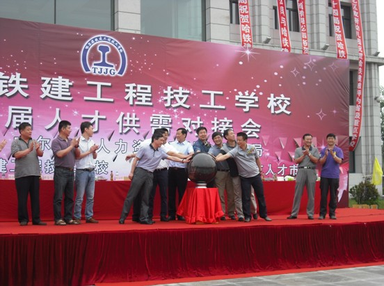 2013年6月15日上午,由黑龙江省人力资源社会保障厅、哈尔滨市人力资源社会保障局主办,哈尔滨铁建工程技工学校承办,中国中铁一局等140多家企事业单位参加的“技能人才大型专场招聘会”在冰城哈尔滨隆重开幕。省人力资源社会保障厅董绍林厅长及技工教育处、职业能力建设处、鉴定中心等部门负责人,哈尔滨市人力资源社会保障局局长丁永林局长等出席了专场招聘会议。同时,此次活动还得到了省政府参事室的大力支持,省政府参事应邀出席专场招聘会议,也得到哈尔滨市人才市场等单位鼎力相助。