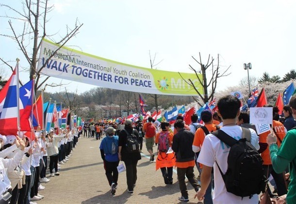 在此紧张局势中,韩国MANNAM国际青年联盟举行了一次倡导"终止战争,维护和平世界"的大型步行活动。